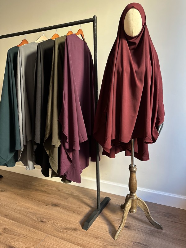 Runder Khimar S – Aus bordeauxroter Medina-Seide